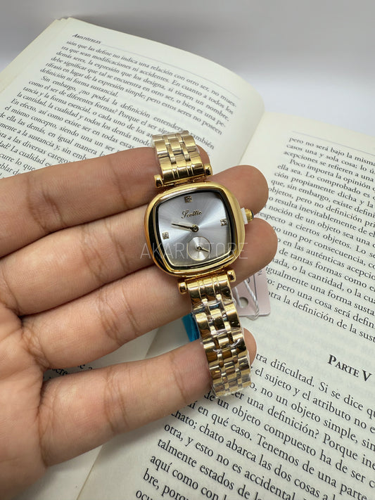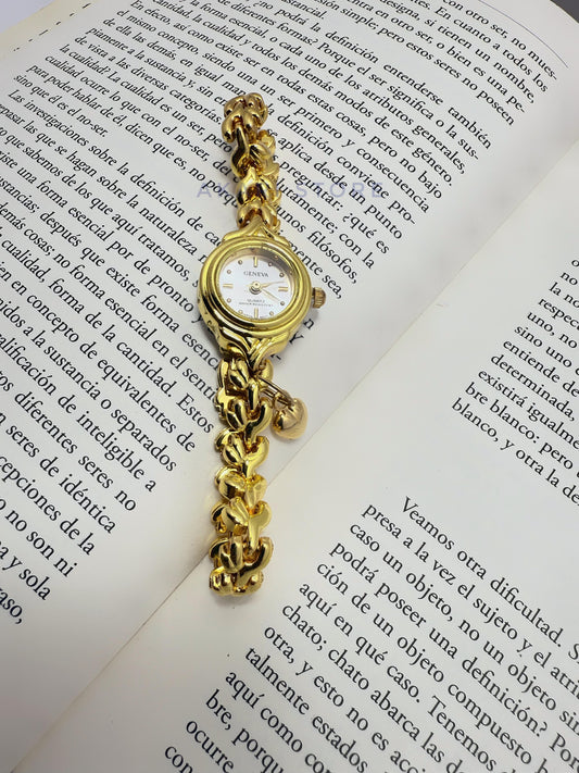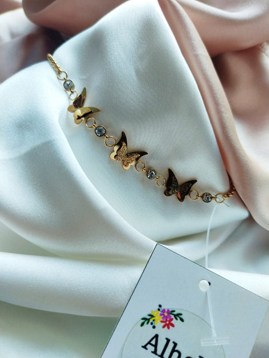 Pulsera con trébol dorado con cuencas blancas facetadas