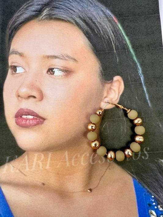 Cadena blanco y dorado con perla grande y dijes de trébol blanco con baño dorado