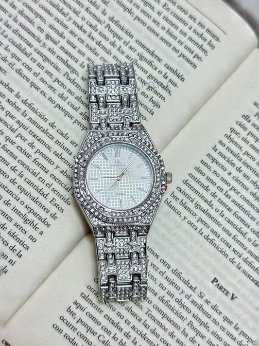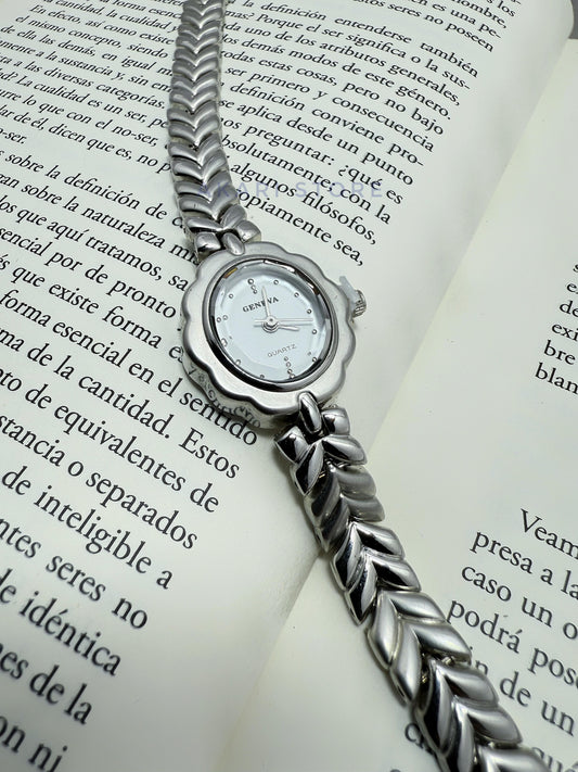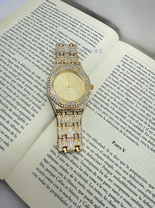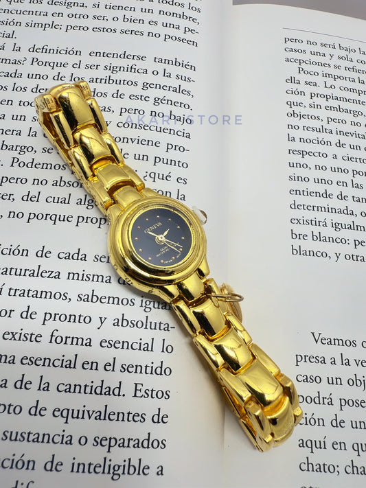 Brazalete Dorado de Acero Inoxidable con Tréboles blancos y dorados