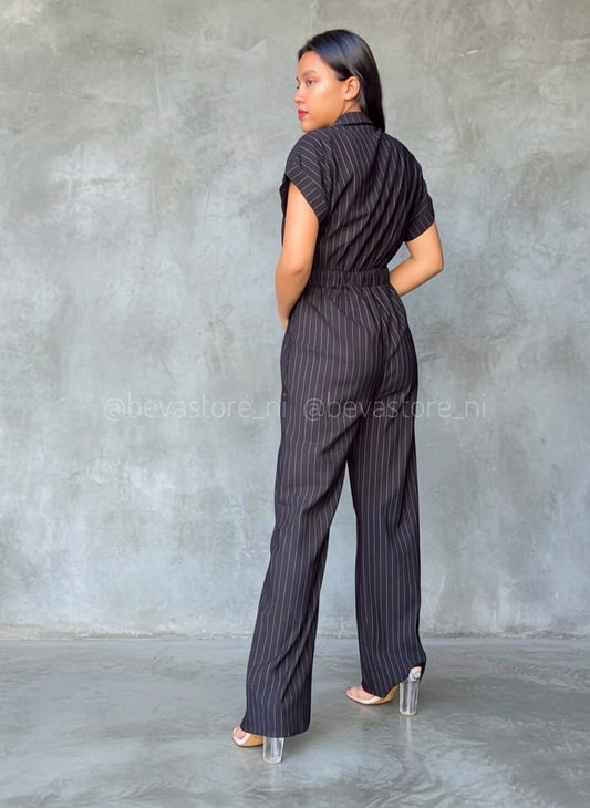 Enterizo Flare negro de rayas blancas