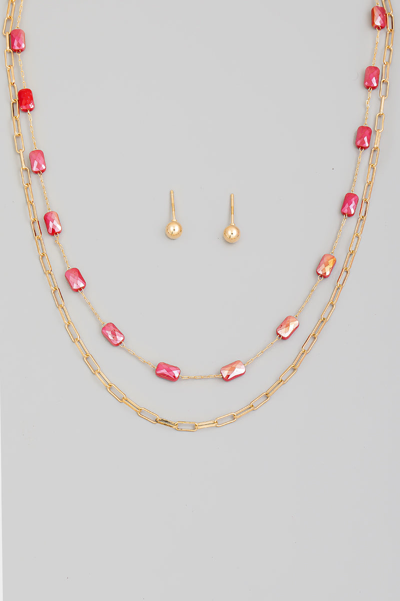 Set de cadena dorada de cuencas rojas rectangulares