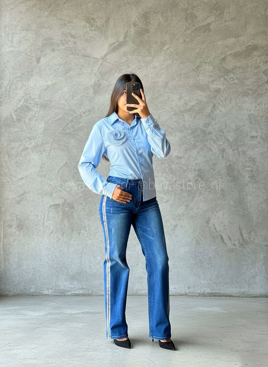 Camisa de vestir manga larga rosa 3D