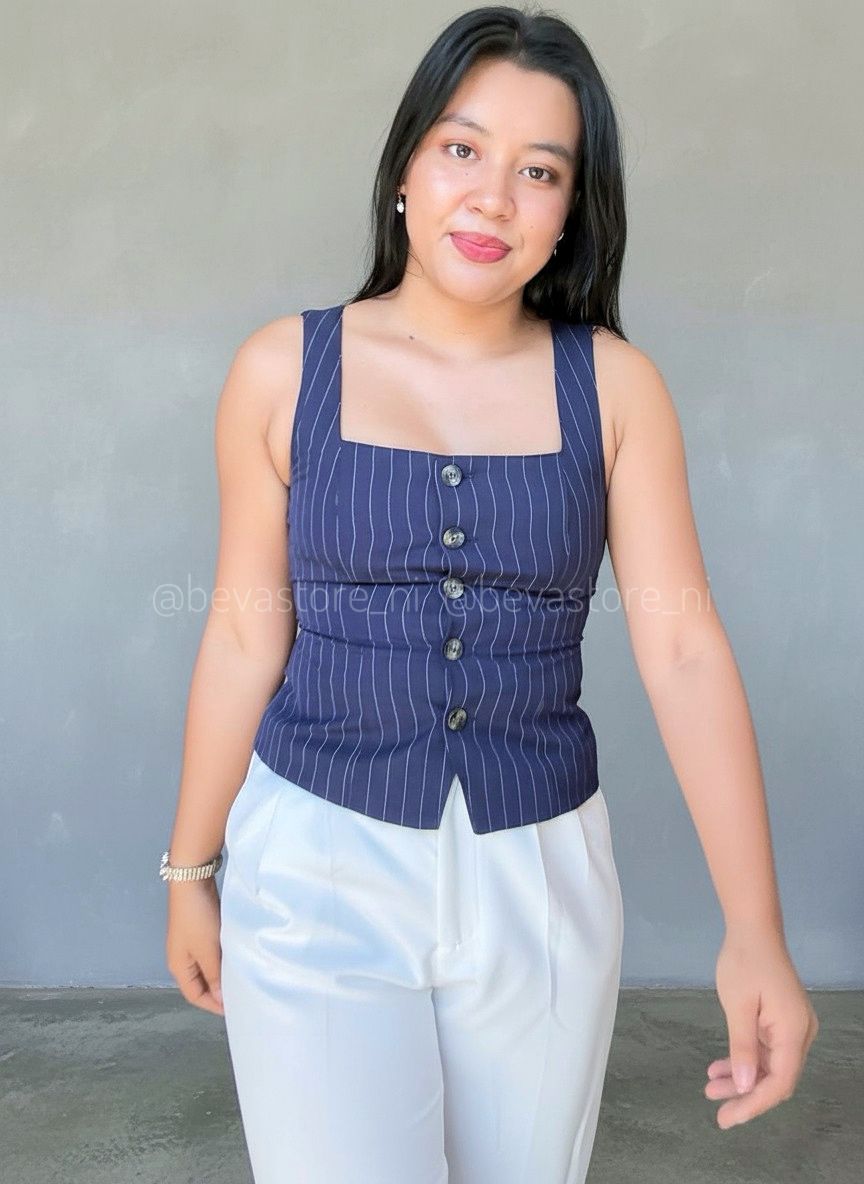 Chaleco rayadado cuello cuadrado
