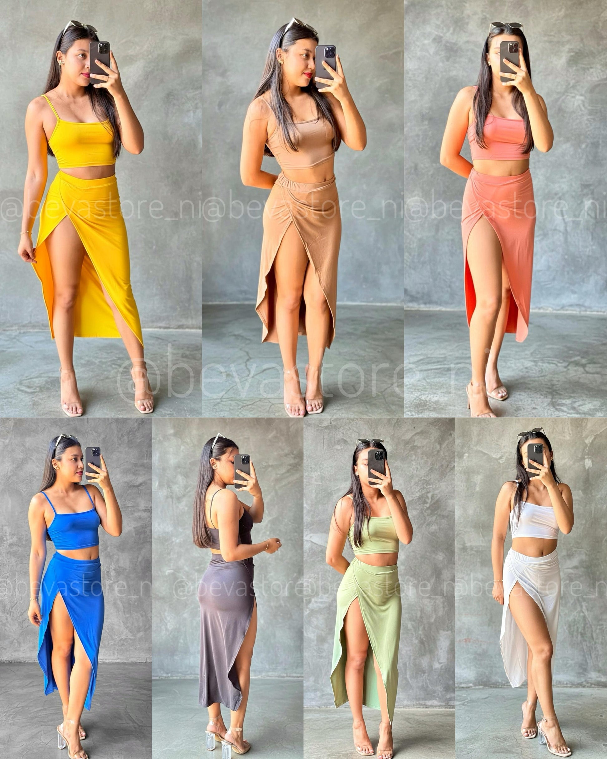 Conjunto de Camisa Corta y Falda Larga Abierta