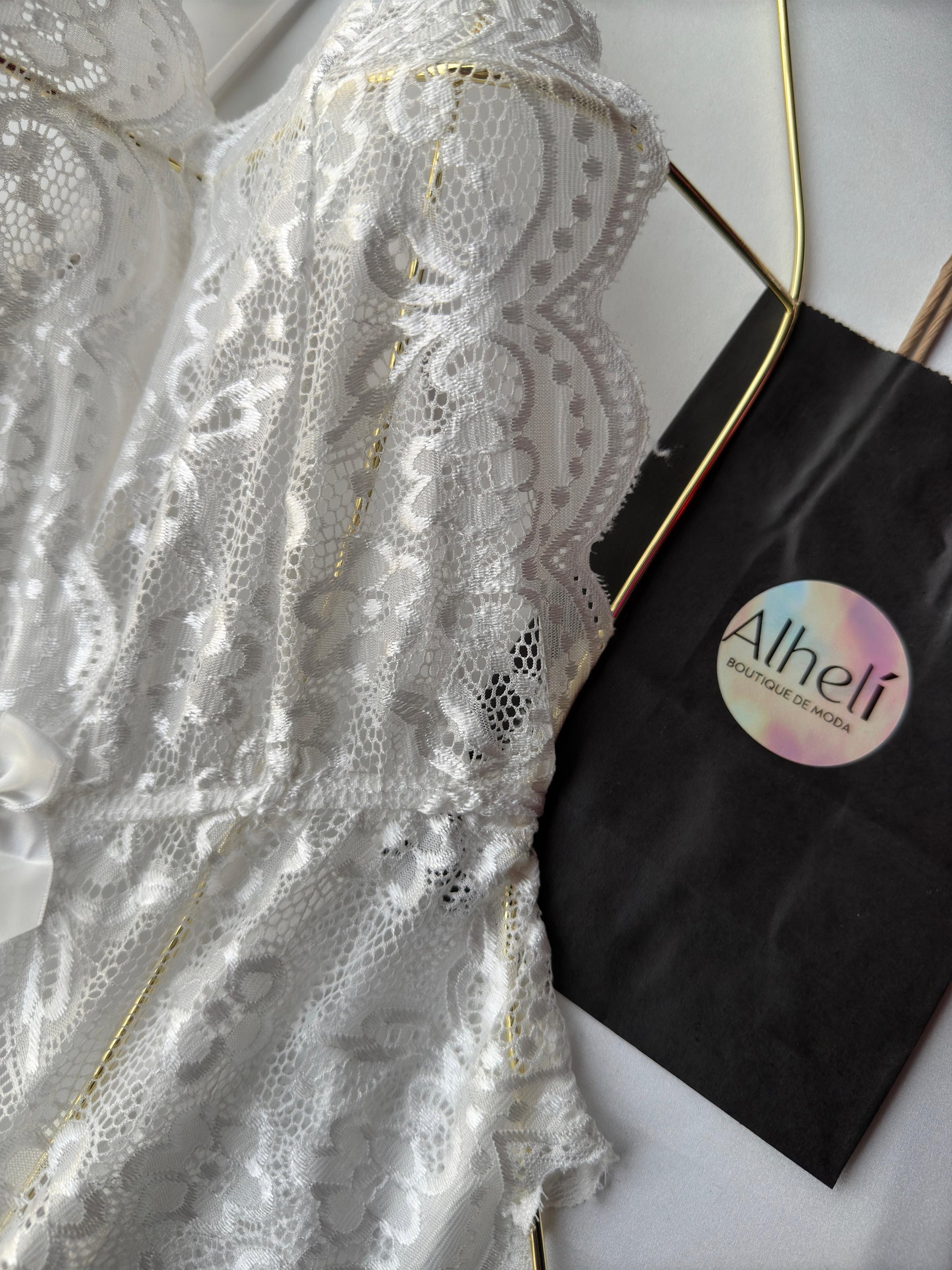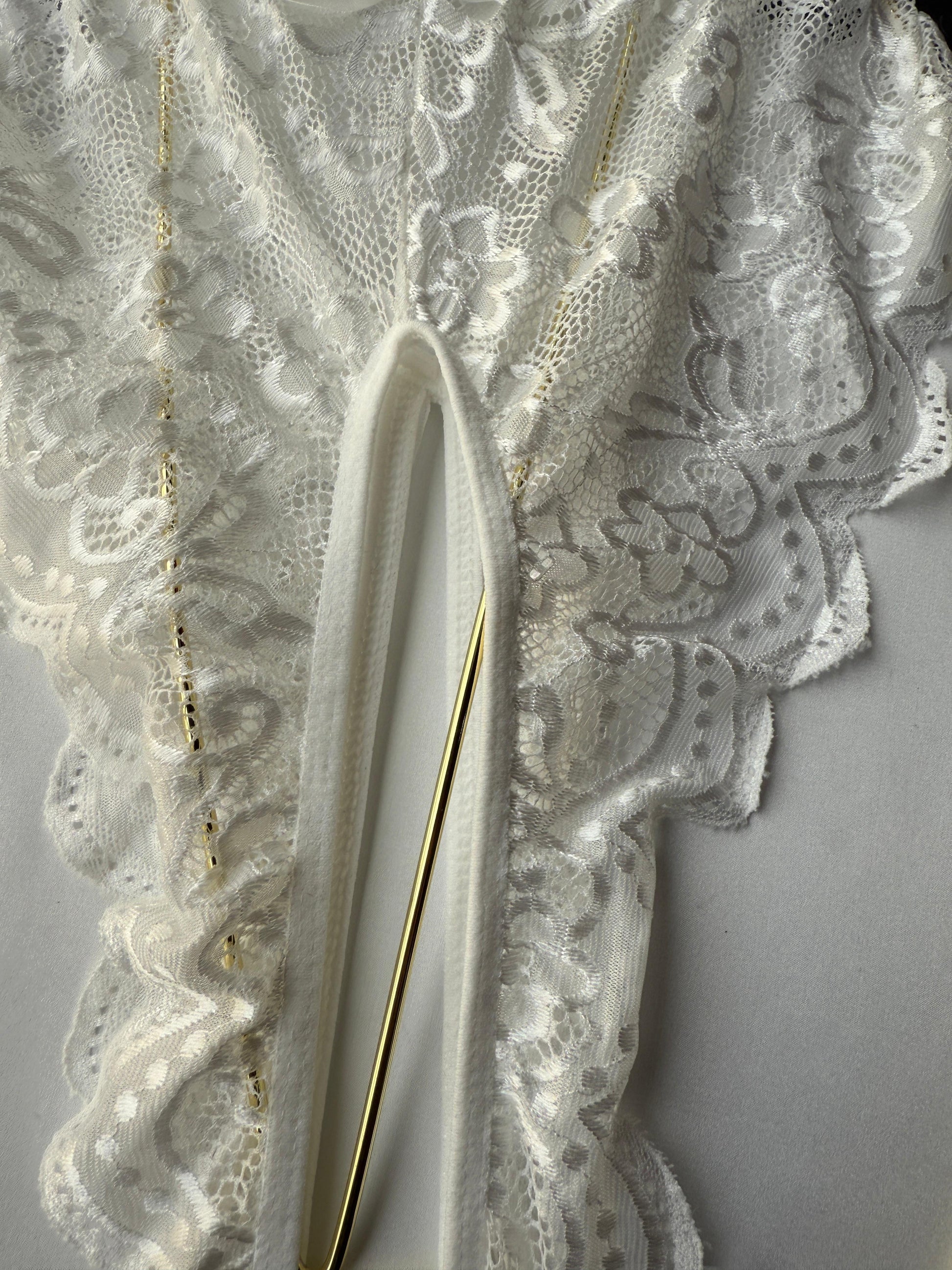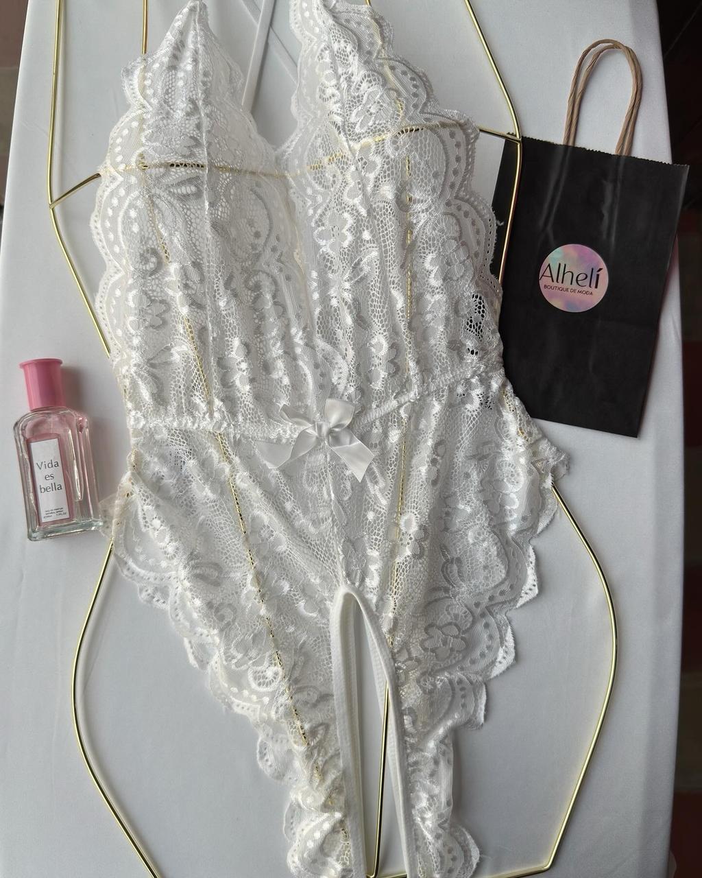 Lencería Blanco Body con entrepierna abierta y espalda cruzada con encaje