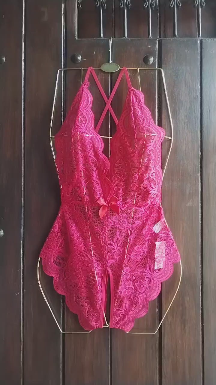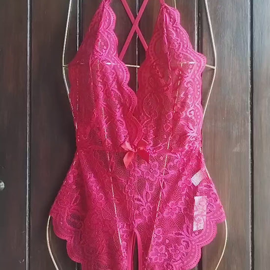 Lencería Roja Sexy Para Mujer Con Cuello Halter, Encaje, Body Sin Espalda Con Tanga