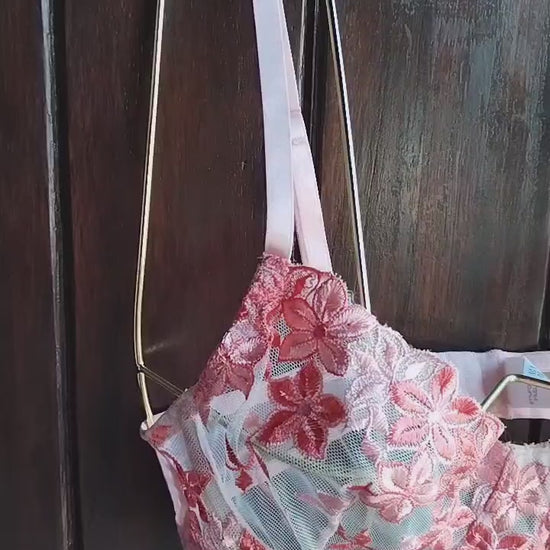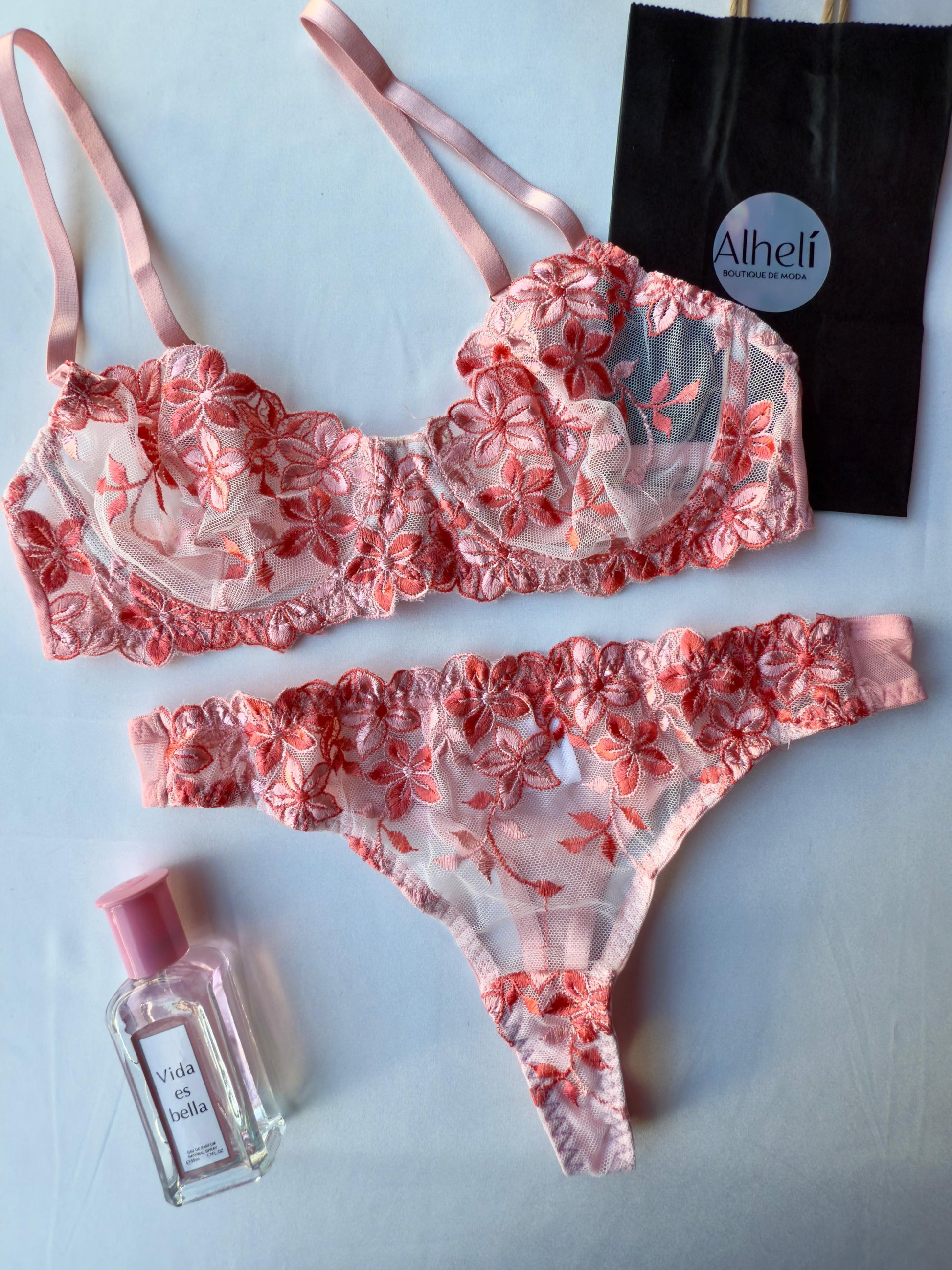 Lenceria rojo con bordado floral romantica 2 piezas