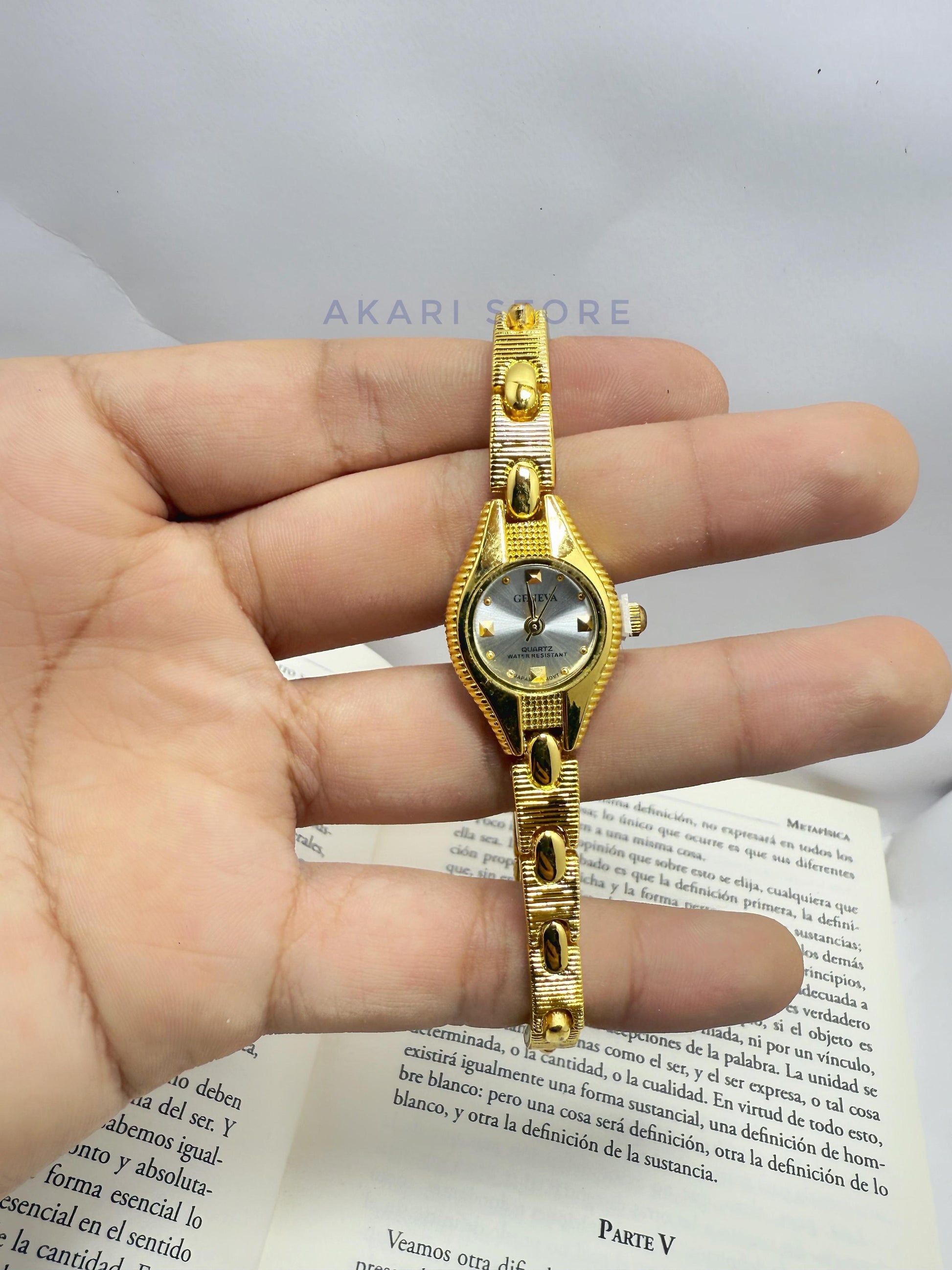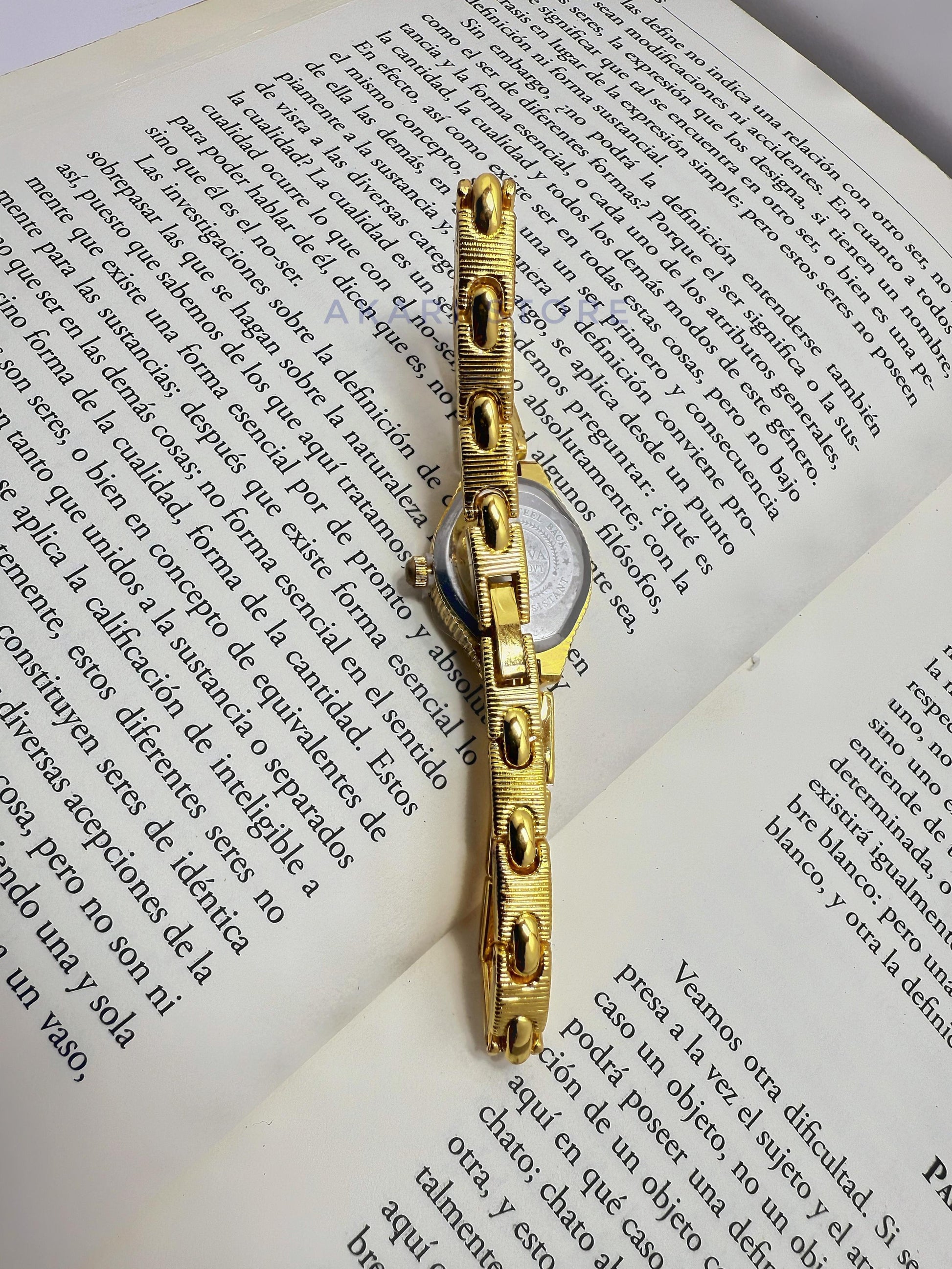 Reloj dorado con fondo gris