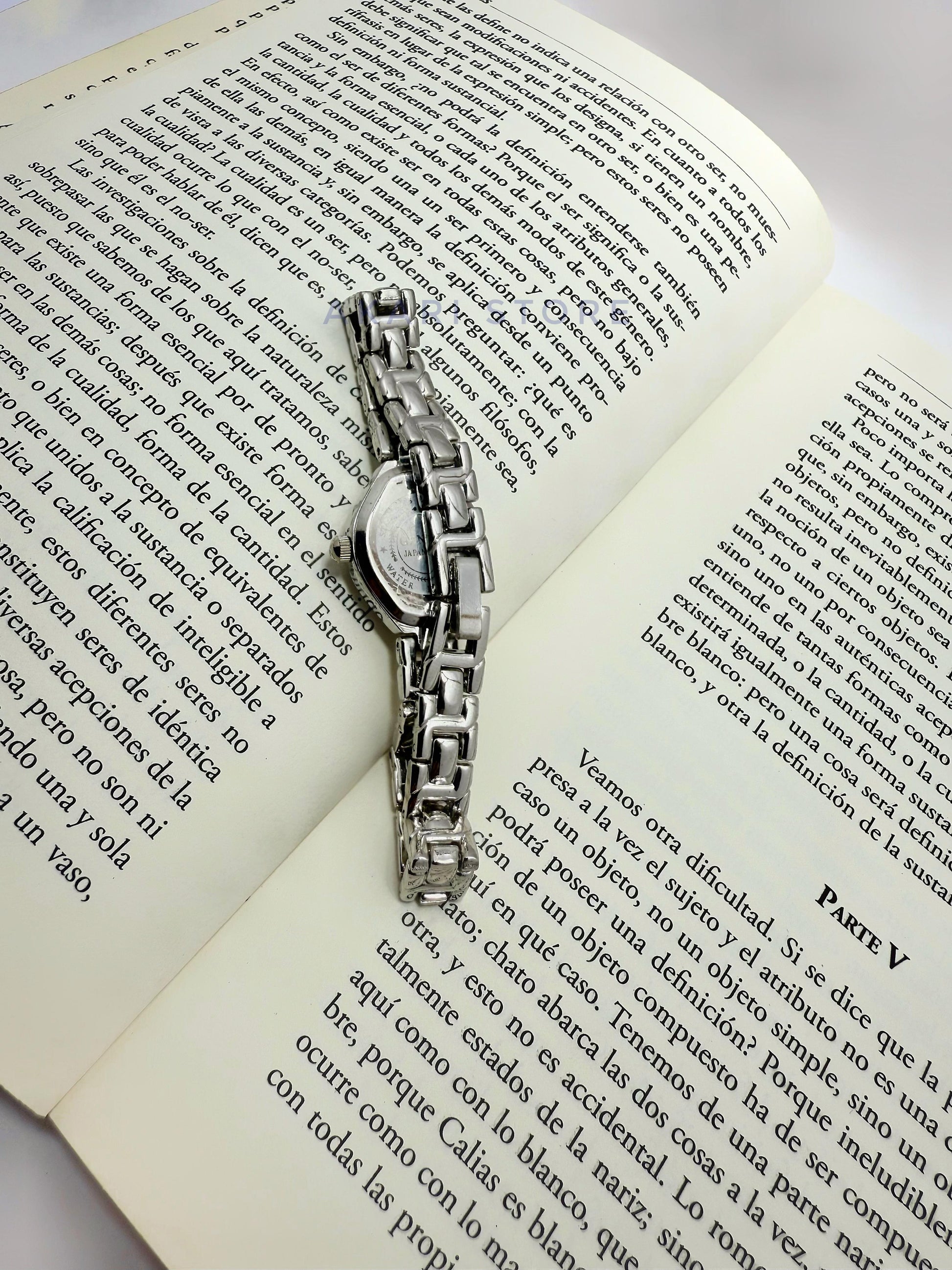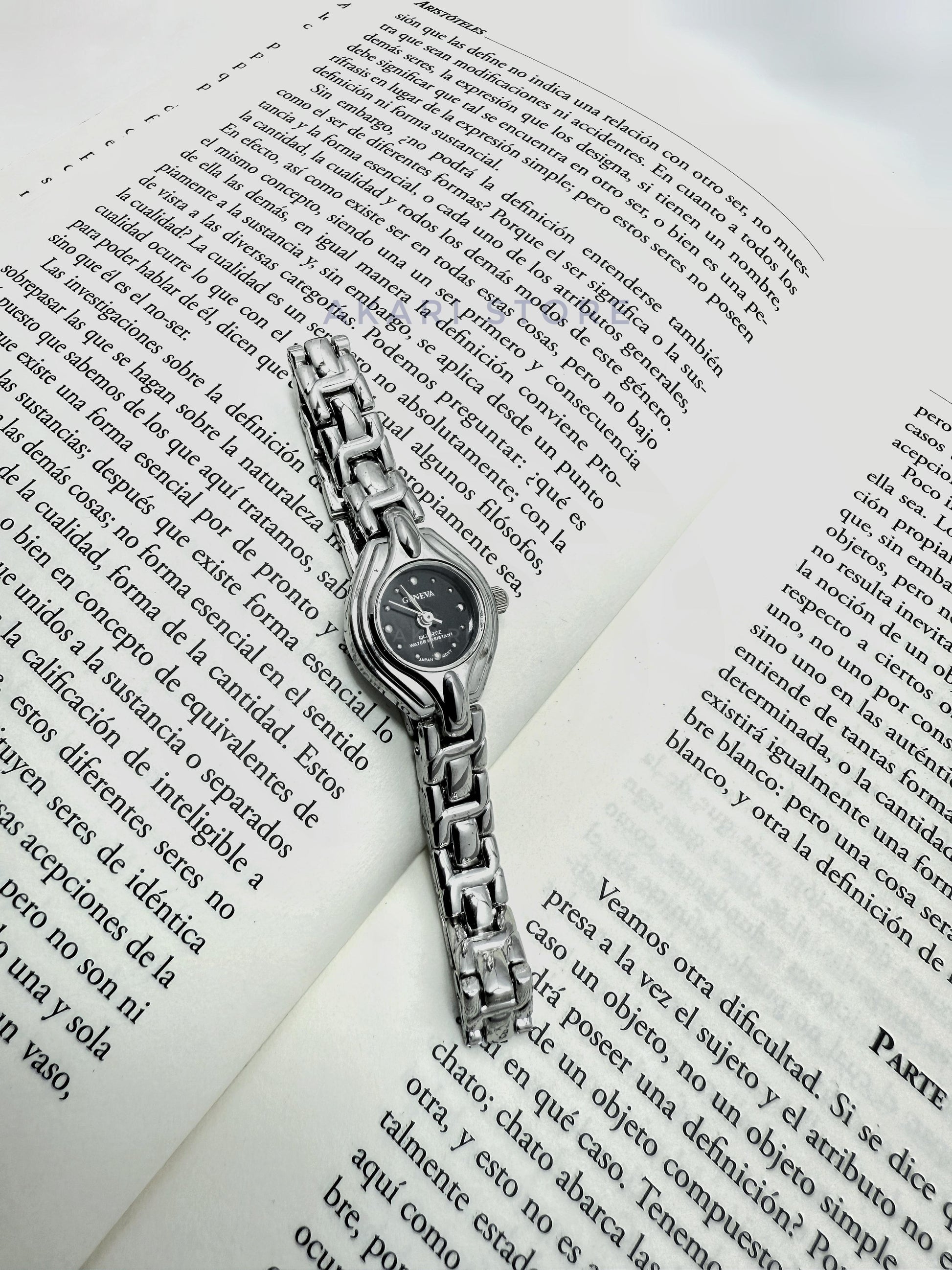 Reloj plateado con fondo negro