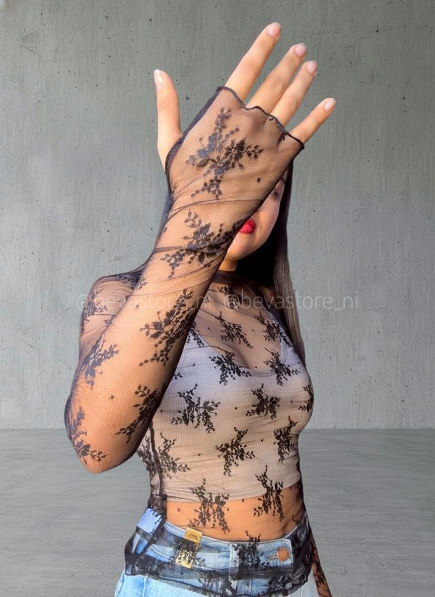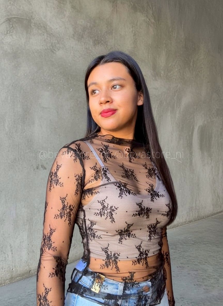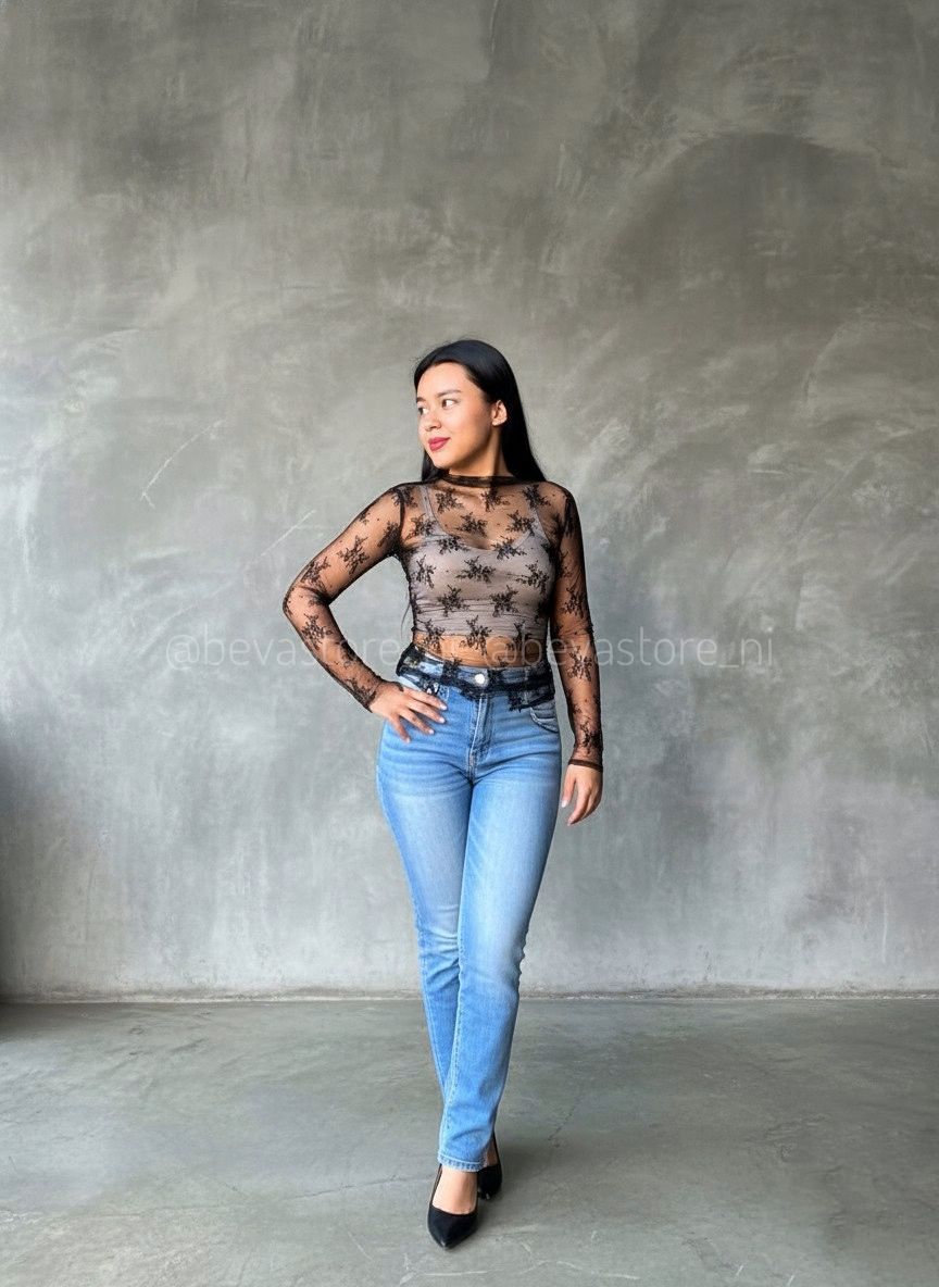 Top encaje manga larga negra