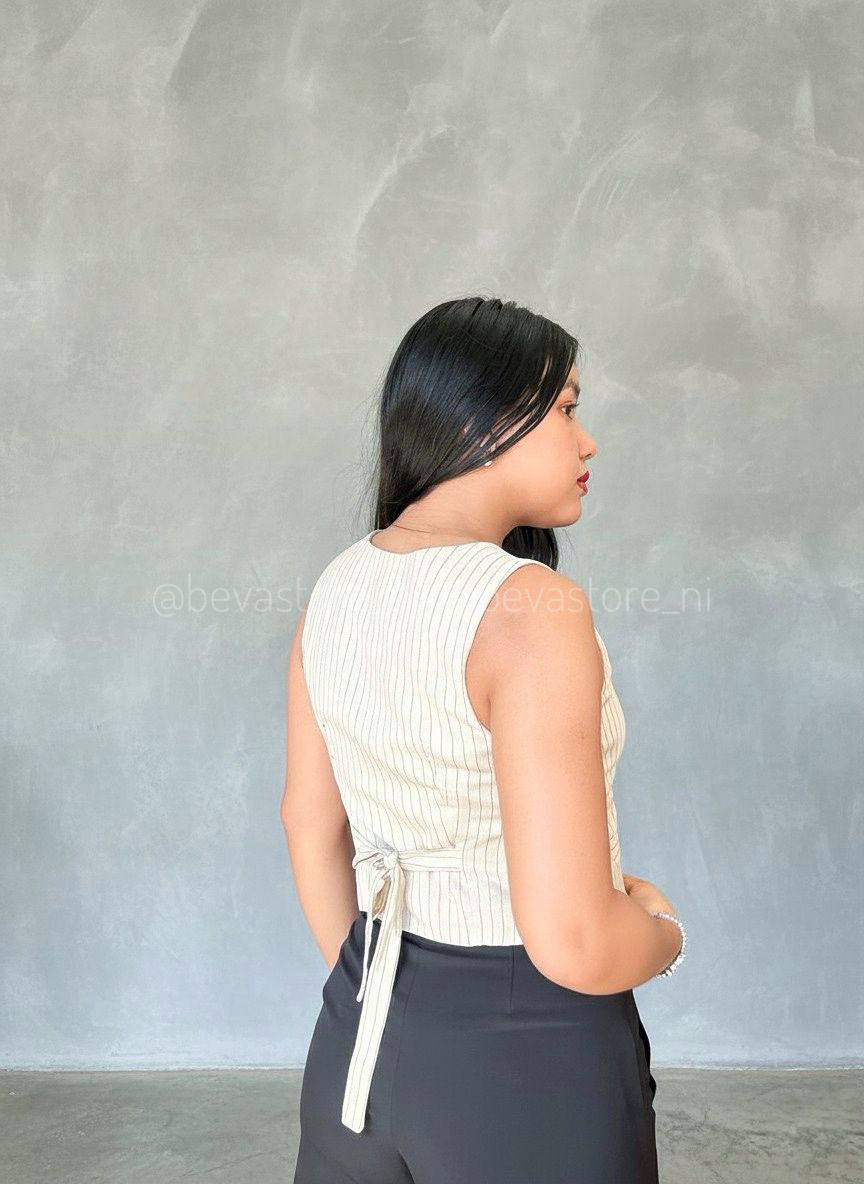 Top tipo chaleco con botones y lazo en la espalda rayado